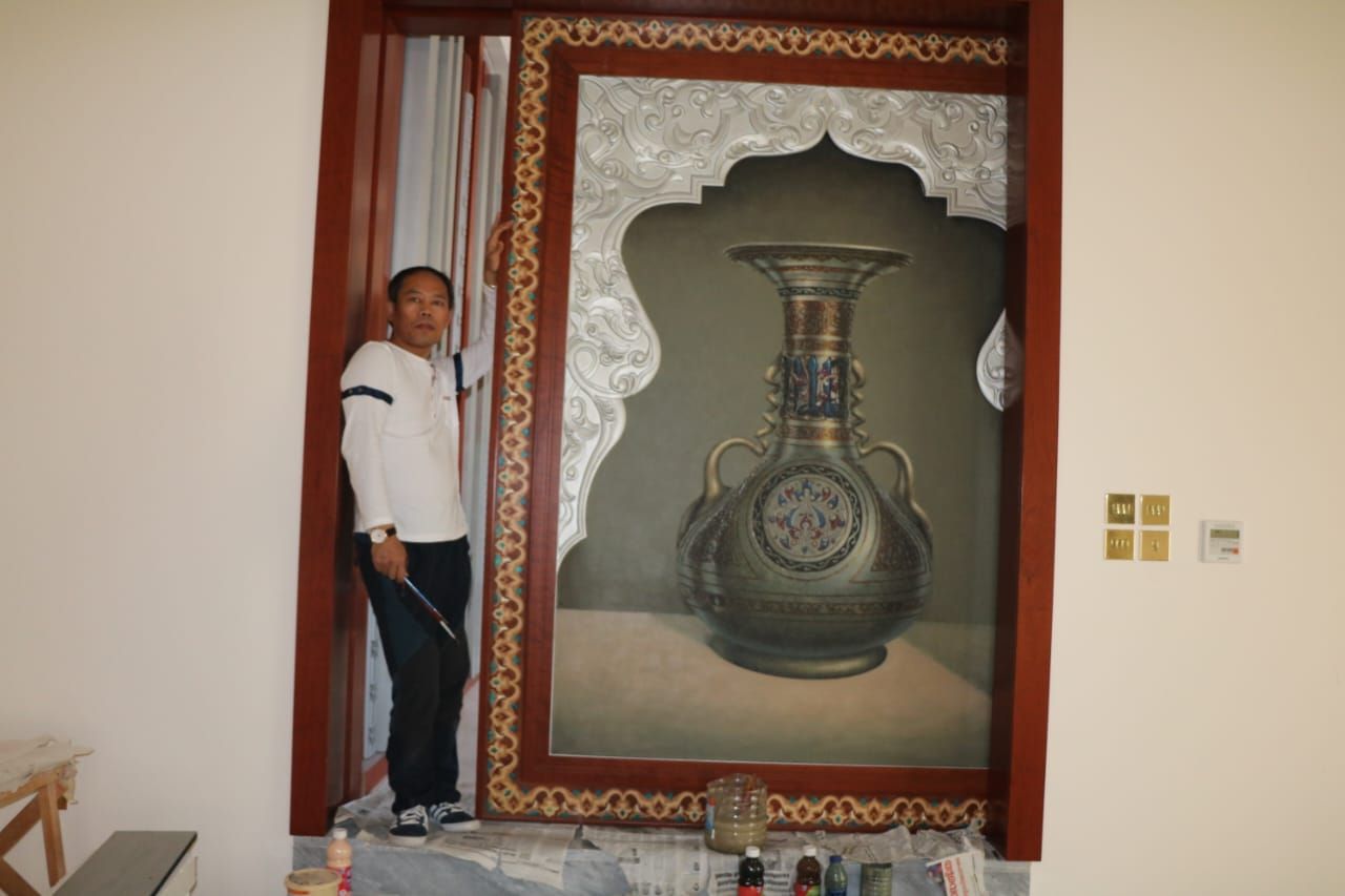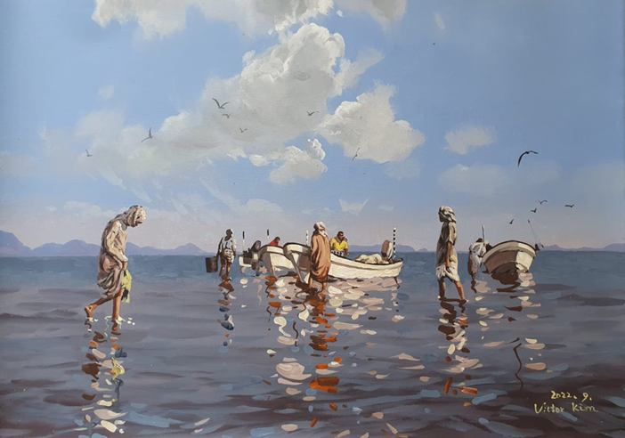 Victor Kim was born in 1966 and grew up in a small town in South Korea and graduated form Hingik Art University As soon as he graduated from University, Kim started traveling overseas. He firmly believes that it is be immersing himself in new environments that he can master his art. Initially he went to spend four years in Egypt where he discovered the Arabic culture and lifestyle. Kim has also spent another many years in Malaysia, China and Brunei. During his career. Kim has always been interested in sharing his knowledge and passion for arts through various workshops to inspire the young generations.